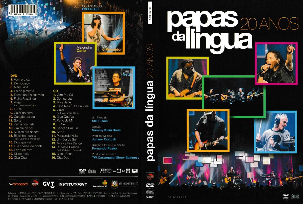 Agradecimentos: Papas da Língua agradece a Deus, aos nossos familiares e amigos, ao Governo do Estado do Rio Grande do Sul e Secretaria de Estado da Cultura, a GVT, ao Instituto GVT, a TW Carangacci, ao Cau Netto, nosso parceiro de sempre, a nossa equipe técnica e equipe de produção. Aos nossos fãs, e a todos que ajudaram direta ou indiretamente na realização do projeto Papas da Língua 20 anos.