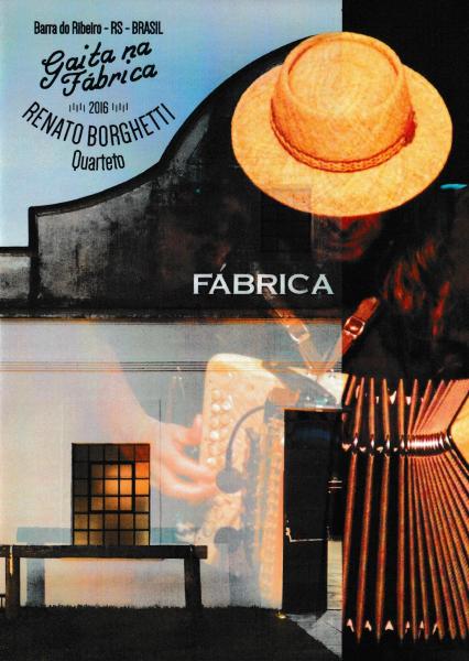Opção com apenas as músicas: Gaita na fábrica. Créditos iguais ao documentário, com as seguintes exceções: Captação de vídeo: Tango Gravações em Movimento; Turkinho (agradecimentos). Mixagem e masterização: Pedrinho Figueiredo. Montagem do show e autoração: Rafael Roso Berlezi. Faixas: 01. Milonga de la puteada (Esteban Morgado) / 02. Festa dos rios (Daniel Sá) / 03. Santa morena (Jacob do Bandolim) / 04. Brincando com a Dora (Renato Borghetti) / 05. Chama mar (Pedrinho Figueiredo) / 06. Forró pra já (Vitor Peixoto) / 07. Outras águas (Daniel Sá) / 08. Alfonsina y el mar (música: Ariel Ramírez, letra: Félix Luna) / 09. Cartão postal (Alegre Corrêa) / 10. Araçá (Renato Borghetti, Daniel Sá) / 11. Iaiai (Renato Borghetti) / 12. Conceição da Barra (Daniel Sá). Duração: 54:05