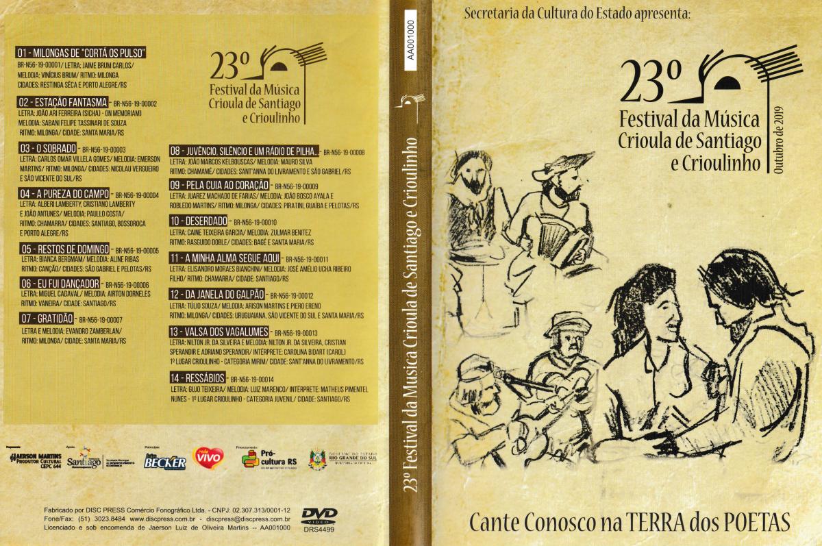 Brasil / RS, em Santiago, gravado ao vivo no Centro de Eventos do Ginásio Aureliano de Figueiredo Pinto, 4 e 5 de outubro de 2019, sexta-feira e sábado, durante o 23º Festival da Música Crioula de Santiago e Crioulinho.