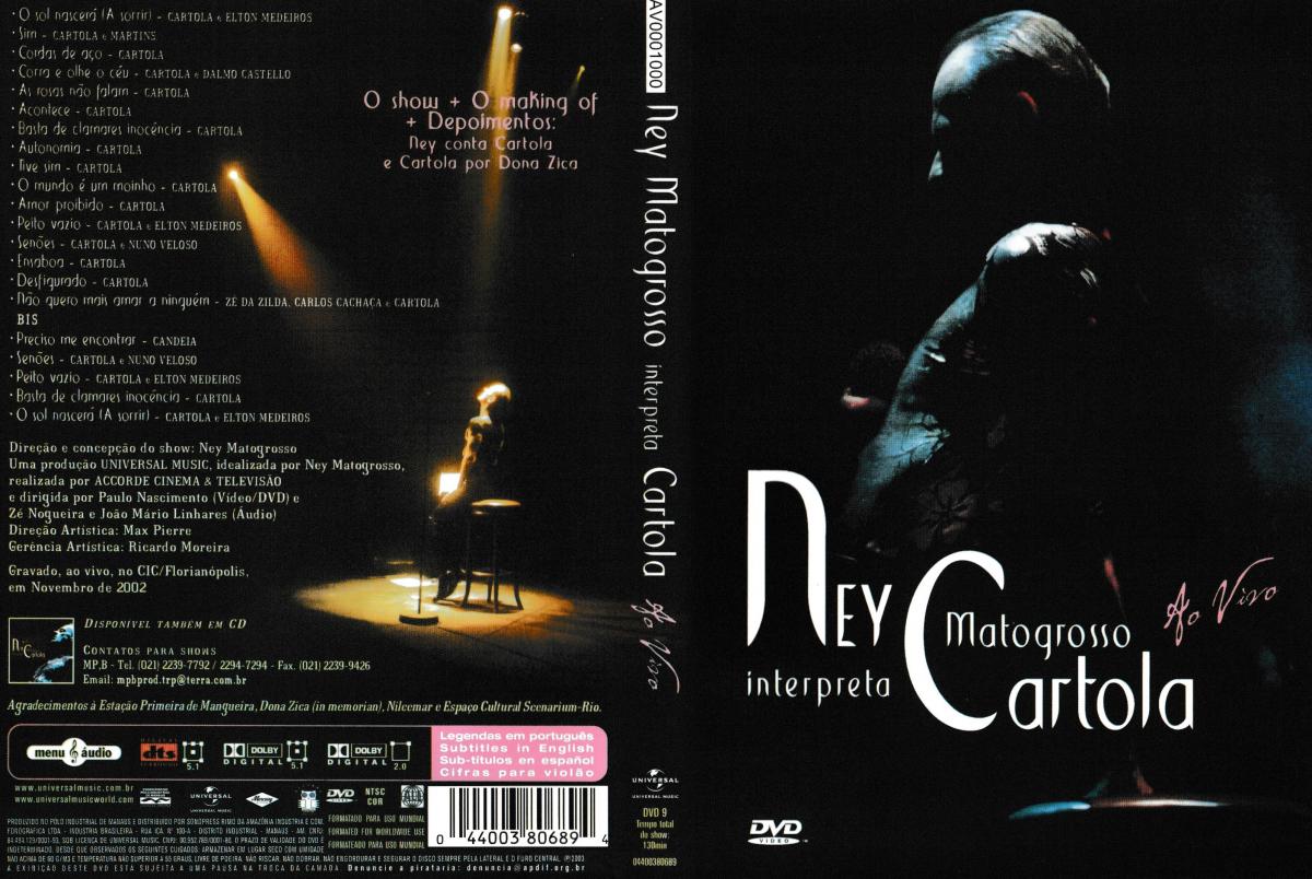 Registro do show de divulgação do CD Ney Matogrosso interpreta Cartola (2002, estúdio, 12 faixas). Além das faixas do DVD 01-06, 09, 10, 12-15 que fazem parte do CD, as restantes são inéditas. Exceto "Preciso me encontrar", de Candeia, cantada no bis, todas as outras são autoria de Cartola e parceiros. Além do DVD Ney Matogrosso interpreta Cartola – Ao vivo sai também o CD homônimo ao vivo. Gravado em Florianópolis, produção da Accorde Filmes [nos créditos: Accorde Cinema e Televisão] com equipe técnica gaúcha. Show gravado em plano-sequência, mas com cortes na edição.