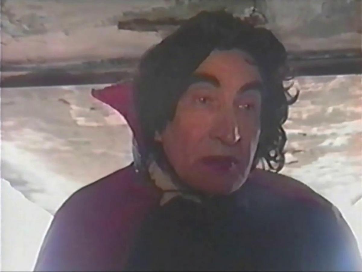Letreiros: // Em 1847 Elizabeth, a esposa de Wladimir Drácula suicidou-se. Sua alma encarnou em Guapa (Maria Isabel Hornos), resumindo: Elizabeth e Guapa são a mesma pessoa! // Drácula que nunca morre //.