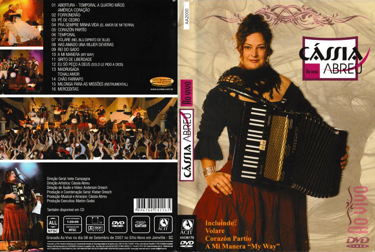 Cássia Abreu, catarinense de Lages, mas profundamente identificada com a cultura gaúcha desde os tempos em que fez parte do Grupo Bando de Louco com Elton Saldanha. Ela está presente no primeiro DVD musical lançado no RS: Elton Saldanha no XXIII Rodeio Crioulo Internacional de Vacaria (2000). Seu primeiro DVD solo – Cássia Abreu: Ao vivo – é a gravação de um show em comemoração às bodas de prata de sucesso. Com um público de 5.500 pessoas, o show daquela nova turnê foi gravado em uma única noite e sem repetições, reunindo os maiores sucessos de seu repertório de 25 anos. É "Temporal", música pedida pela plateia desde o início do espetáculo. É "Corazón partío", releitura de Alejandro Sanz. "Eu amo a Ivete Sangalo, mas gravei essa versão em milonga antes dela", brincou, no palco.