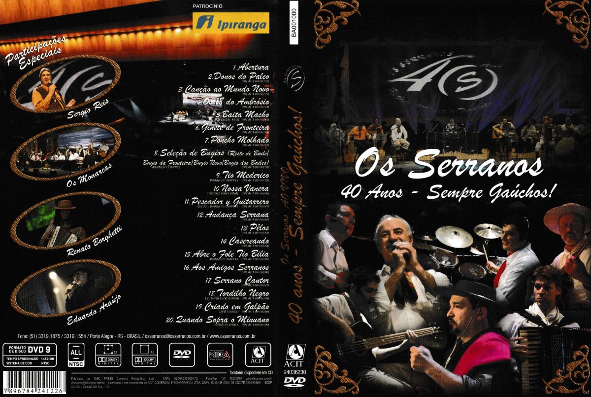 Títulos alternativos: Enquanto nos créditos iniciais consta logotipo Os Serranos 40 anos – História, música e tradição, nos finais aparece Os Serranos: 40 anos – Sempre gaúchos – adotado por esta pesquisa – o mesmo da capa do DVD, acrescido de ponto de exclamação ao final: Os Serranos: 40 anos – Sempre gaúchos!