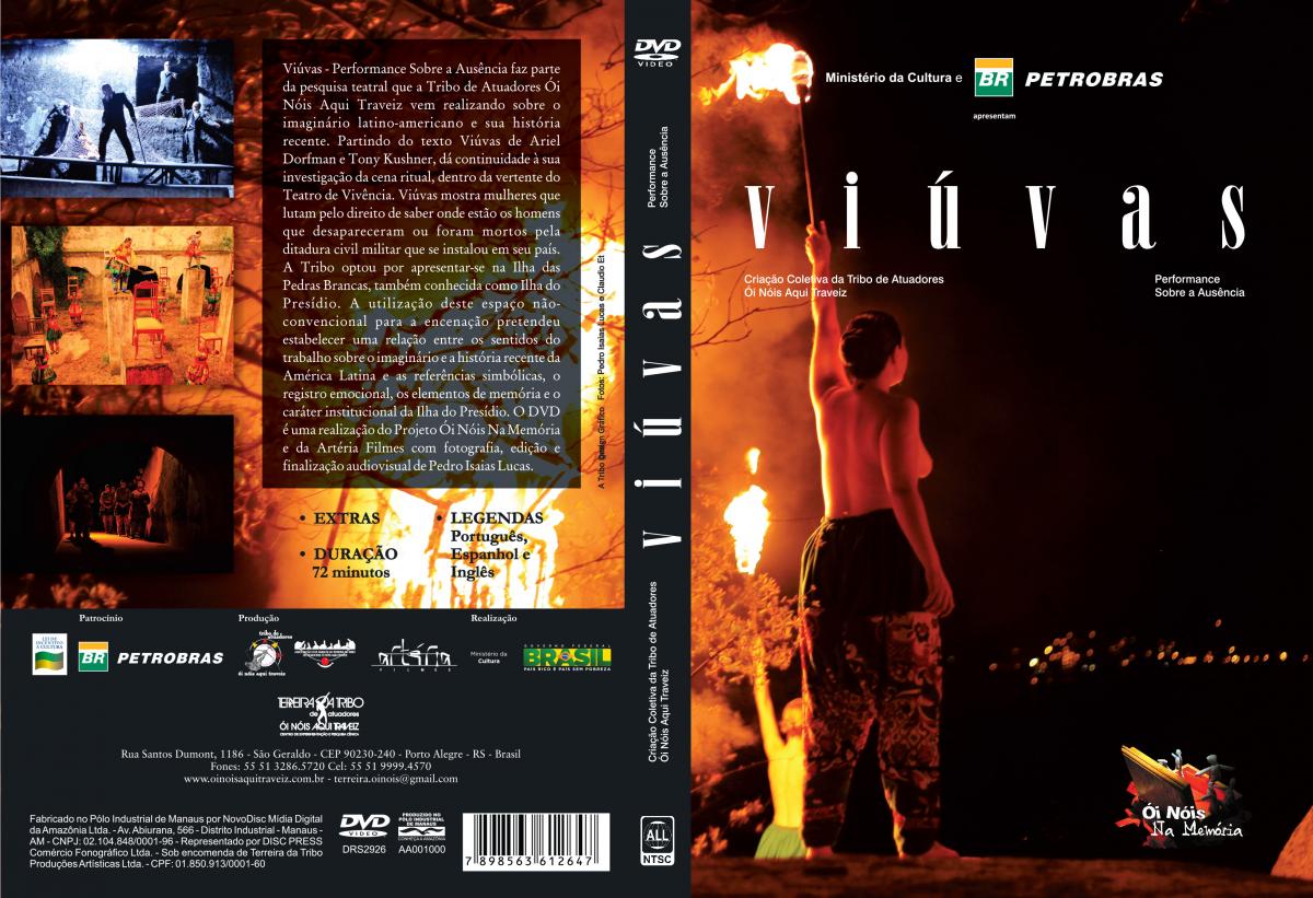 4 x DVD (2.ed.): Distribuição: DVD 02/04, In: Caixa de memórias – Registro de três espetáculos da Tribo de Atuadores Ói Nóis Aqui Traveiz. Disc Press Comércio Fonográfico DRS4362. Autoração: 19 jun 2019. Realização: Artéria Filmes. Apoio: Tribo de Atuadores Ói Nóis Aqui Traveiz / Centro de Experimentação e Pesquisa Cênica. Financiamento: Pró-cultura RS Lei nº 13.490/2010 FAC Fundo de Apoio a Cultura. Realização: SEDAC Secretaria de Estado da Cultura / Governo do Rio Grande do Sul. Sem extras. Encarte 4p. Os outros espetáculos são: O Amargo santo da purificação (DVD 01/04) e Viúvas – Performance sobre a ausência (DVD 02/04).