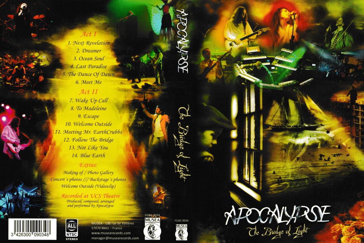 Terceiro DVD da banda caxiense, Apocalypse: The Bridge of light é o registro de apresentação do show, dividido em dois atos. O primeiro é composto por canções com temáticas próprias, e o segundo, a encenação de "The Bridge of light", a história de Jimmy, um menino órfão, buscando com seu companheiro, Z14 as respostas sobre sua origem em um velho parque abandonado. O show foi filmado com oito câmeras; intervenções cênicas de atores convidados, aparato de luz e projeções. O DVD apresenta além da íntegra do show, o "encore" de "Blue Earth" e extras. Toda a edição do DVD foi criada pela Moving Studios, empresa do guitarrista Ruy Fritsh. A arte gráfica é de G2D Soluções Visuais, empresa do vocalista Gustavo Demarchi, baseada nas ilustrações do artista gráfico Robson Piccin.